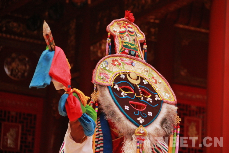 圖為拉薩市城關(guān)區(qū)娘熱民間藝術(shù)團(tuán)演員多吉次仁表演國(guó)家級(jí)非物質(zhì)文化遺產(chǎn)“嘎爾”攝影:劉莉