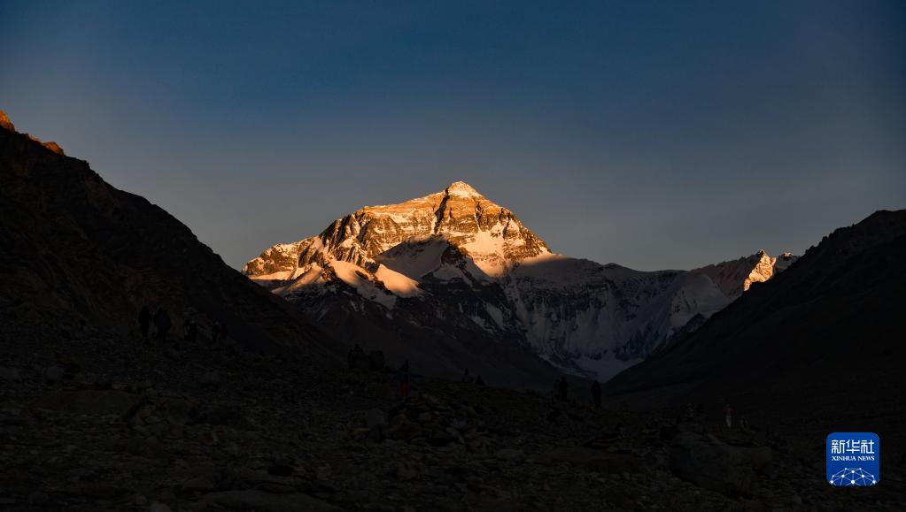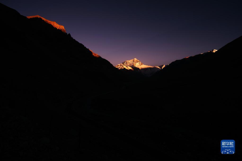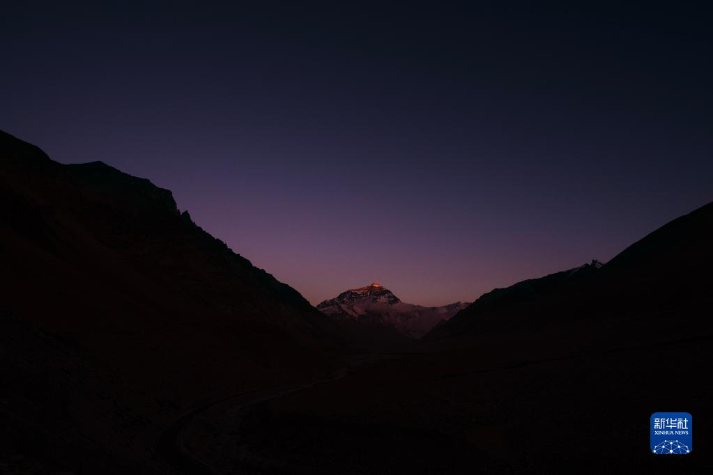 6月4日拍攝的太陽完全落山之后的珠峰。新華社記者 費(fèi)茂華 攝