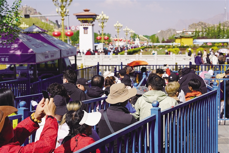 “你喜歡‘特種兵式旅游’還是‘城市漫游’呢?”面對記者的問題,身著民族服飾正在拍照的伍女士回答:“我本人更喜歡‘城市漫游’,畢竟年紀大了?!胤N兵式旅游’太累了,可能不適合我?!蔽榕縼碜运拇?,今年53歲,喜歡旅行的她經(jīng)常約著好朋友四處走走。“這次進藏,我們打算就在拉薩待著,逛逛拉薩的大街小巷、博物館、夜市。了解一座城市的文化、歷史,比匆忙的旅行更有趣。”