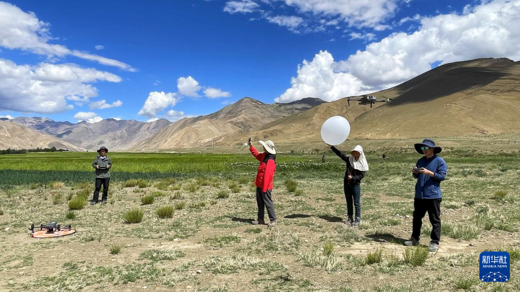 團隊開展探空氣球大氣廓線觀測和無人機熱紅外影像獲取。(中國科學(xué)院空天信息創(chuàng)新研究院供圖)