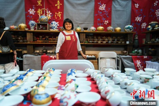 8月7日,拉薩進口商品展覽會現(xiàn)場,臺灣陶藝師白芃絪在自己的展位上。中新社記者 江飛波 攝