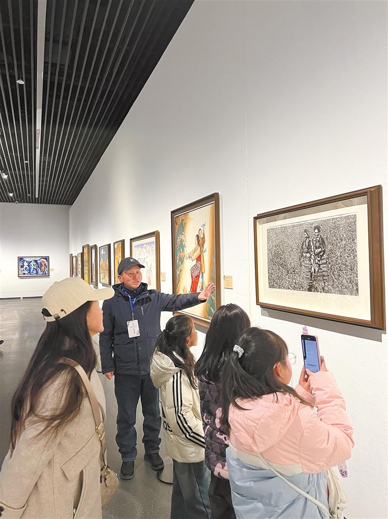 周明暉為參觀西藏美術(shù)館的群眾進(jìn)行講解。