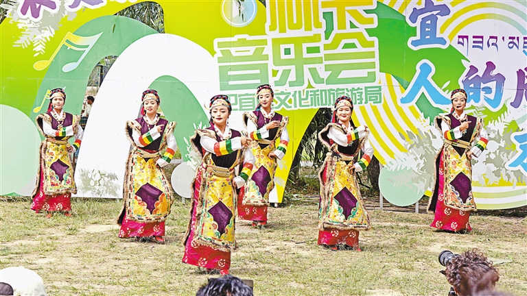 圖為在尼洋河畔濱江公園舉行的林卡主題音樂會演出現(xiàn)場。