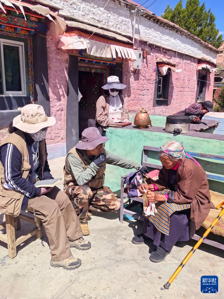 普查隊員在山南市曲松縣曲松鎮(zhèn)瓊嘎村向當地老人咨詢該村歷史文化情況。(受訪者供圖)