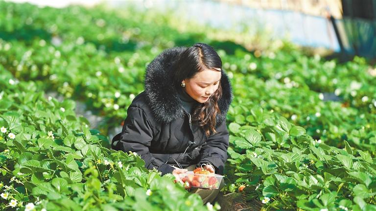 市民在采摘草莓。 記者 王靜 益西曲珍 攝