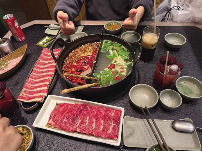 市民普布倉(cāng)決趁著假期回家,想好好招待親朋好友,思來(lái)想去,火鍋店成了她的首選。普布倉(cāng)決打聽了多家人氣火爆的火鍋店鋪后得知,不少店鋪在春節(jié)期間都推出了新春活動(dòng)和新菜品。于是,她預(yù)訂了一間包廂,和親朋們一同享用火鍋。她笑著說(shuō):“春節(jié)期間,我連續(xù)參加了3場(chǎng)‘火鍋局’。我覺得火鍋可不只是滿足味蕾,更是親朋好友之間情感交流和社交互動(dòng)的好方式?!?/p>