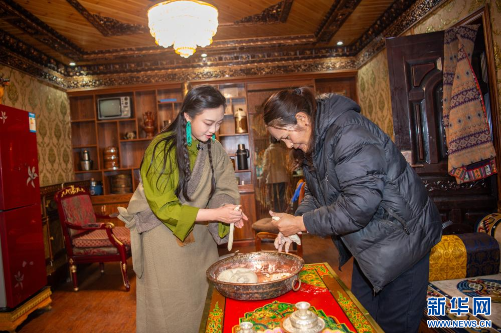 2月27日,游客在扎西曲登社區(qū)33號(hào)民宿體驗(yàn)制作“古突”。新華網(wǎng) 旦增努布 攝