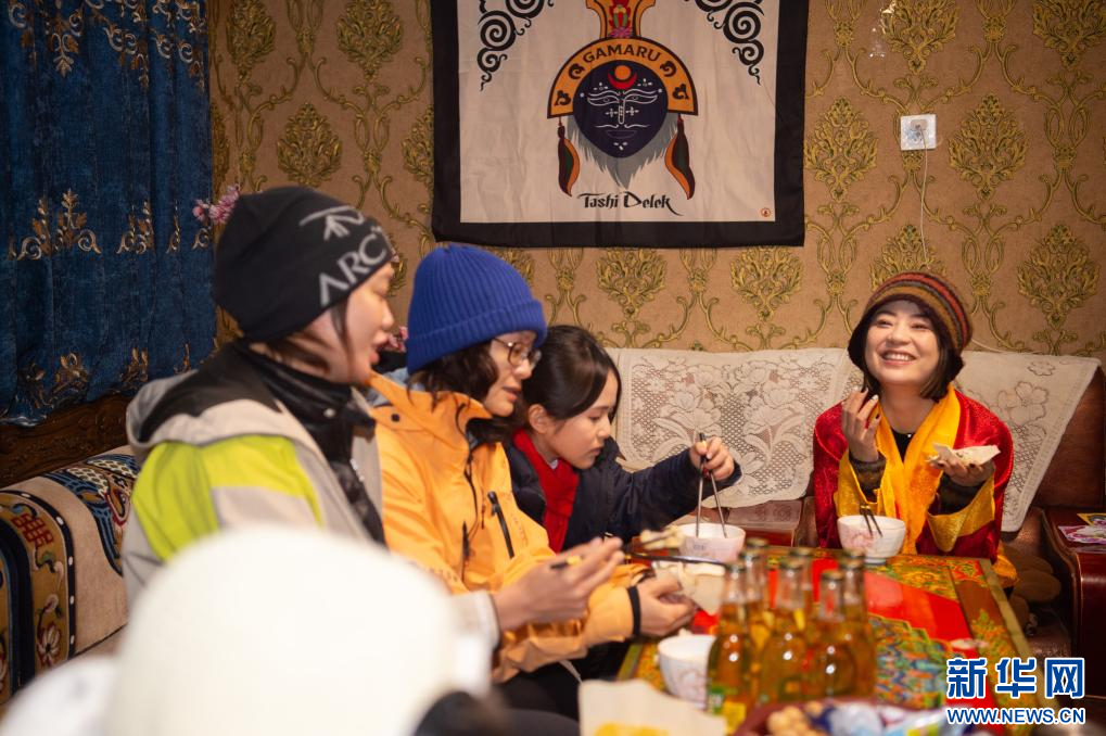 2月27日,游客在扎西曲登社區(qū)33號(hào)民宿體驗(yàn)“古突”之夜。新華網(wǎng) 旦增努布 攝