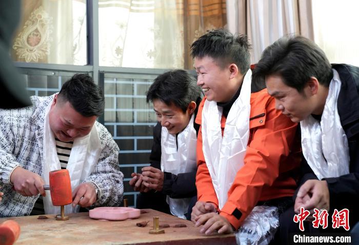 擦擦一詞是藏語對梵語的音譯,意為“復(fù)制”,是在擦模中捺入軟泥等材質(zhì),壓制成型的小型佛造像,西藏特有的脫模泥塑藝術(shù)。圖為3月2日,在西藏拉薩北郊的西藏擦擦文化展覽館,游客體驗制作擦擦。中新社記者 李林 攝
