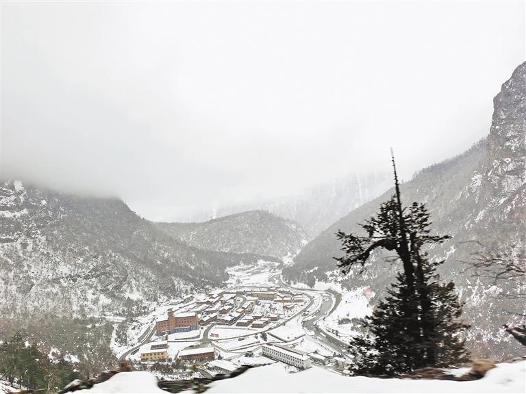 傍晚,翻過海拔5000多米的恰拉山口,經(jīng)過白雪覆蓋的草原,旅游團(tuán)一頭扎進(jìn)云霧籠罩著的日拉雪山深處。濃重的霧氣中,雪花飛舞,松林密布,天地之間只剩黑白兩種顏色。