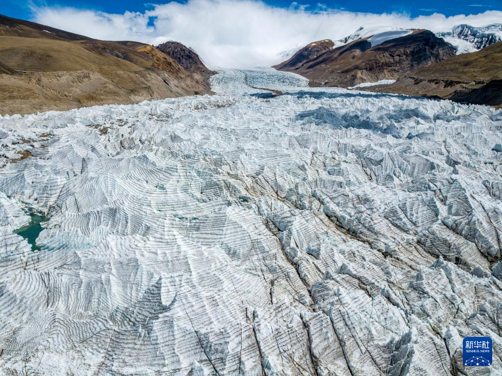 這是日喀則市仲巴縣境內(nèi)的杰瑪央宗冰川(無人機(jī)照片,2024年8月24日攝)。新華社記者 丁增尼達(dá) 攝 ??