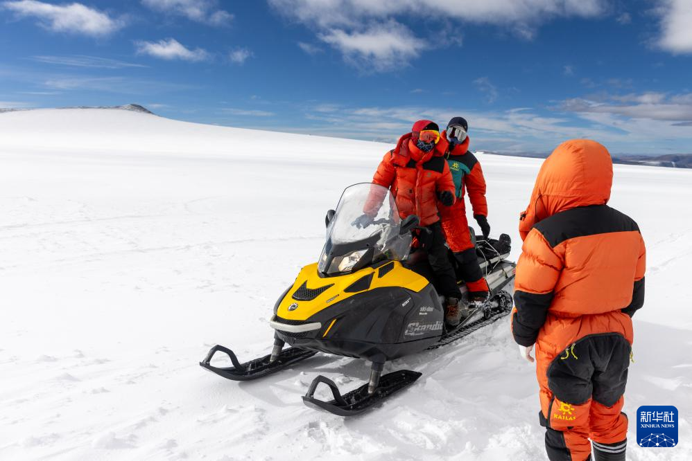 第二次青藏科考冰芯鉆取團(tuán)隊(duì)科考隊(duì)員在海拔6100米的普若崗日冰原頂部作業(yè)。普若崗日冰原是世界上高原冰川的典型代表,是中低緯度最大的冰原,也是青藏高原上最厚的冰原(2024年9月30日攝)。新華社記者 姜帆 攝 ??