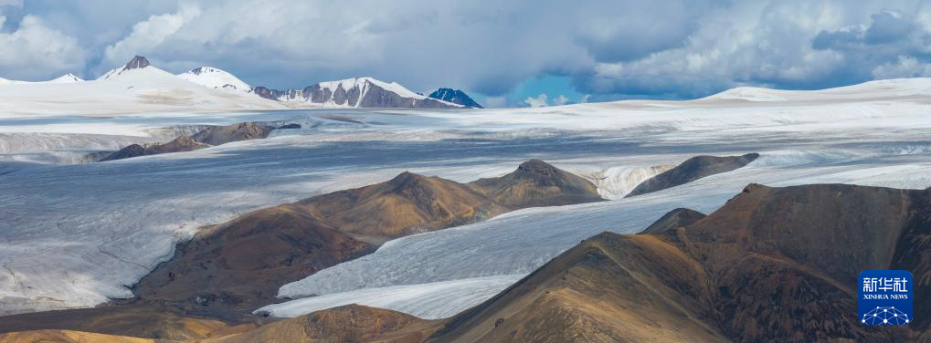鳥瞰普若崗日冰原。普若崗日冰原是世界上高原冰川的典型代表,是中低緯度最大的冰原,也是青藏高原上最厚的冰原(無人機(jī)拼接照片,2024年9月2日攝)。新華社記者 姜帆 攝 ??