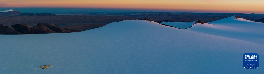 這是第二次青藏科考冰芯鉆取團(tuán)隊(duì)在海拔6100米的普若崗日冰原頂部設(shè)立的科考營地。普若崗日冰原是世界上高原冰川的典型代表,是中低緯度最大的冰原,也是青藏高原上最厚的冰原(無人機(jī)拼接照片,2024年9月30日攝)。新華社記者 姜帆 攝 ??