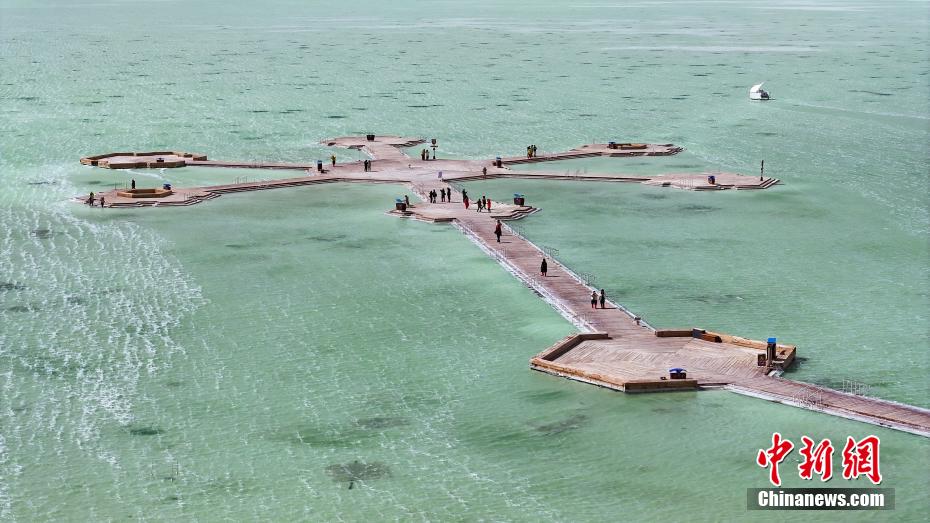 3月26日,航拍春日茶卡鹽湖景區(qū)。茶卡鹽湖位于青海省海西蒙古族藏族自治州烏蘭縣境內(nèi),被譽(yù)為“天空之鏡”,每年都會(huì)吸引大量國(guó)內(nèi)外游客參觀。(無人機(jī)照片)中新社記者 馬銘言 攝