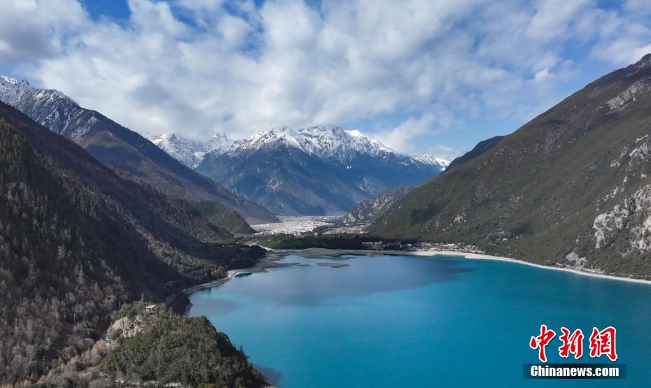 3月30日,航拍巴松措春日風(fēng)景。巴松措又名錯(cuò)高湖,位于西藏自治區(qū)林芝市工布江達(dá)縣,是西藏首個(gè)自然風(fēng)景類國(guó)家5A級(jí)旅游風(fēng)景區(qū)。從空中俯瞰巴松措,碧藍(lán)的湖水被雪山、森林環(huán)繞,宛如鑲嵌在群山間的“藍(lán)寶石”。(無人機(jī)照片)中新社記者 馬銘言 攝