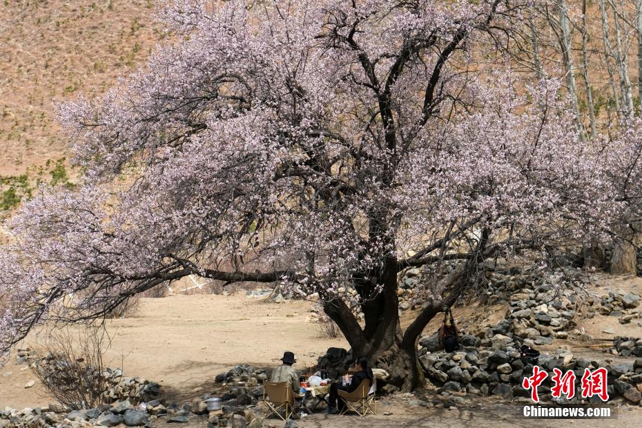 3月下旬,高原已是一片春意。西藏拉薩市區(qū)拉薩河南岸慈覺林的古桃樹進(jìn)入盛花期,3月30日恰逢周末,不少市民游客前往賞花“打卡”,在桃樹下野餐等,享受高原春日風(fēng)光。圖為3月30日,民眾在拉薩慈覺林桃樹下野餐,享受悠閑時(shí)光。江飛波 攝