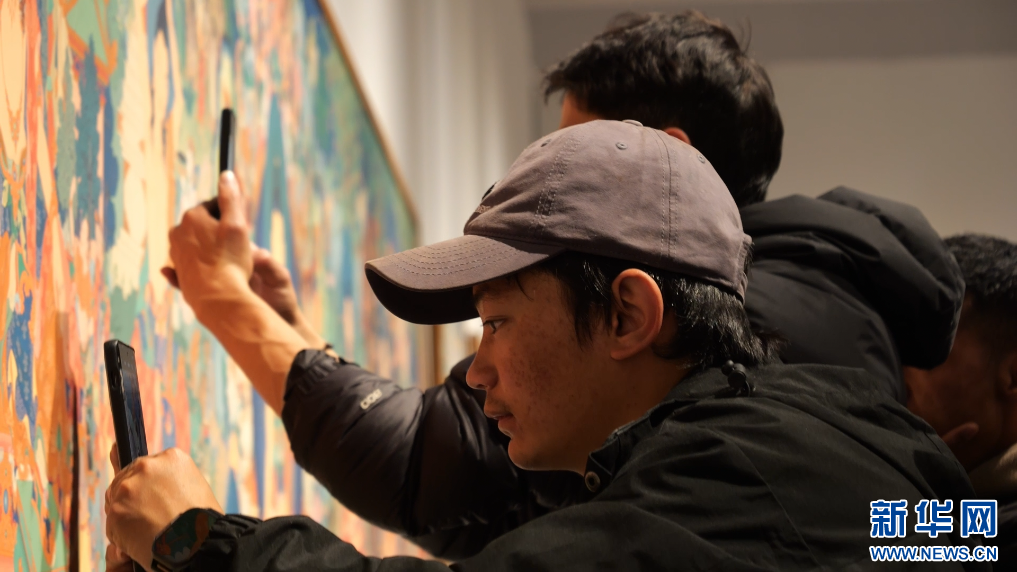 4月9日,觀眾在展覽現(xiàn)場(chǎng)拍攝參展作品。新華社記者 洛卓嘉措 攝