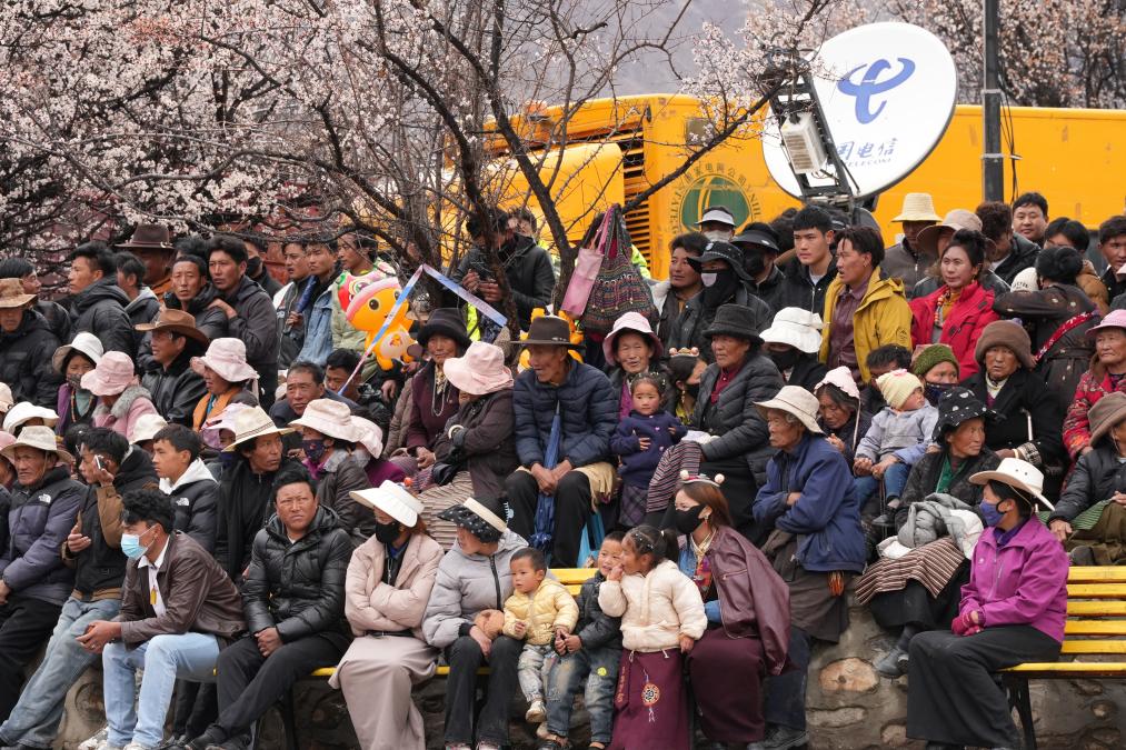 昌都市洛隆縣第十一屆俄西杏花文化旅游節(jié)開幕式現場的觀眾。新華社發(fā) (格桑赤列攝)