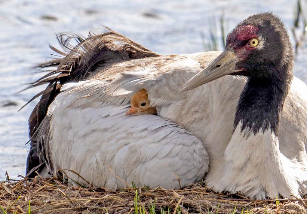 圖片中的這對黑頸鶴夫婦已連續(xù)8年在那曲市申扎縣申扎藏布濕地營巢育雛,并受到了普遍關(guān)注,每年都有攝影師前往拍攝。2024年,我們拍到了它們孵蛋的畫面。后來聽當?shù)匾氨T說,孵出的小鶴在兩個多月大的時候不幸夭折,這突如其來的打擊使得雌鶴抑郁了很長時間,有時會無緣無故地攻擊配偶,有時還會拔掉自己的尾羽,曾經(jīng)形影不離的夫妻倆很長時間不窩在一起休息……幸運的是,如今的它們已走出悲傷。2025年6月4日,我們又拍到了它們雛鳥出殼的瞬間,如今,新出生的小家伙正在茁壯成長。