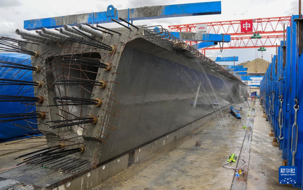 6月18日拍攝的薩熱路跨江大橋箱梁。新華社記者 晉美多吉 攝 ??