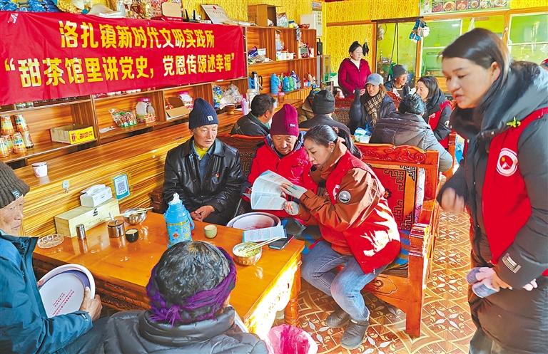 洛扎縣洛扎鎮(zhèn)新時(shí)代文明實(shí)踐所開(kāi)展“甜茶館里講黨史 黨恩傳頌述幸?!敝黝}宣講活動(dòng)。