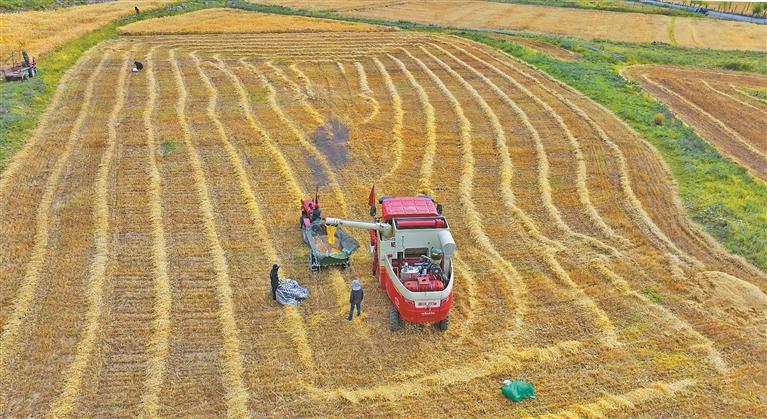 秋收時節(jié),廣袤田野鋪展金色畫卷。拉薩市墨竹工卡縣田間地頭一片繁忙景象,大型收割機轟鳴穿梭,村民忙碌其間,豐收喜悅洋溢臉龐。