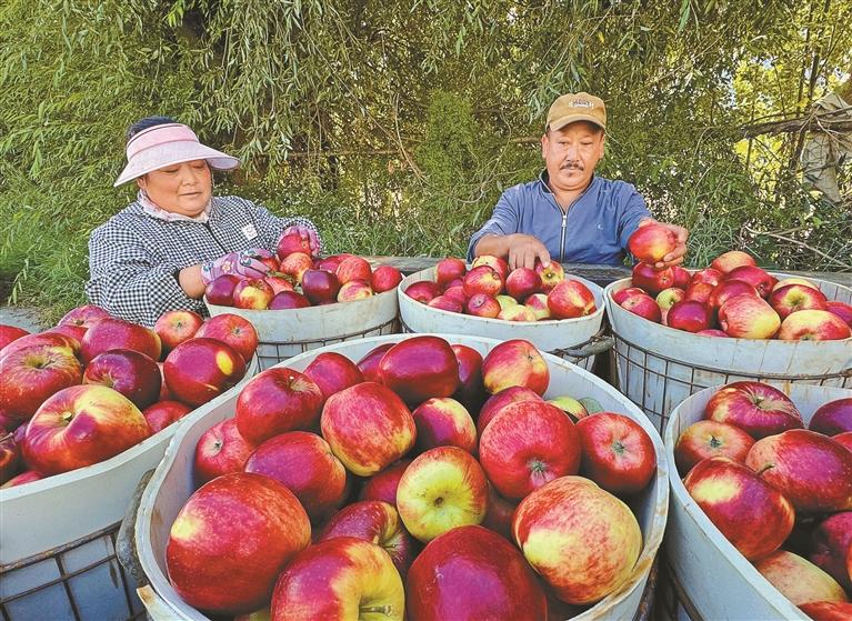 走進(jìn)位于林芝市巴宜區(qū)與米林市交界處的林芝農(nóng)墾嘎瑪農(nóng)業(yè)有限公司蘋(píng)果種植基地,連片的果樹(shù)枝繁葉茂,紅彤彤的蘋(píng)果綴滿(mǎn)枝頭。得益于高原充足的日照、較大的晝夜溫差,以及清冽的雪山融水灌溉,這里的蘋(píng)果色澤鮮艷,口感脆甜多汁,深受消費(fèi)者青睞?!?/p>