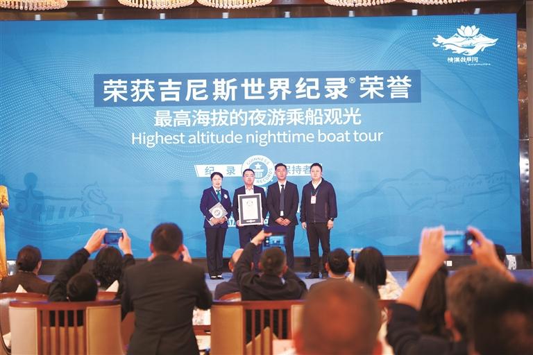 現(xiàn)場(chǎng)評(píng)審紀(jì)實(shí)片中,拉薩河光影與建筑的交融之美、餐秀演藝?yán)锏奶妻寺?、藏式游船的水上體驗(yàn),充分展示了《情滿拉薩河》的專業(yè)水準(zhǔn)。吉尼斯世界紀(jì)錄的認(rèn)證加冕,屬于每一位《情滿拉薩河》項(xiàng)目的創(chuàng)制者、參與者、支持者和關(guān)注者,更是獻(xiàn)給高原文旅的匠心之作。