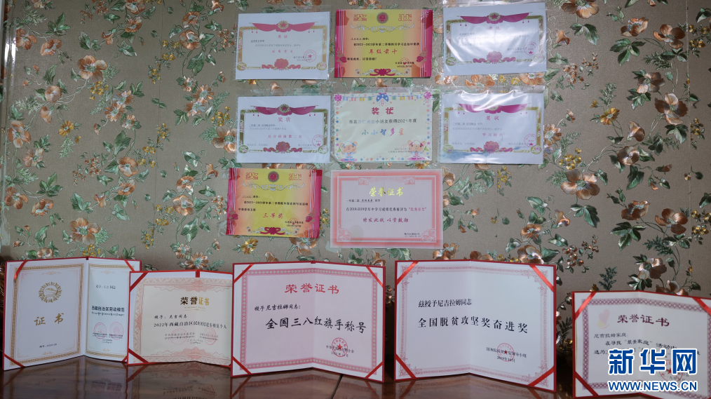 圖為尼吉一家的榮譽墻(9月28日攝)。新華網(wǎng) 柑丹鴦琦攝
