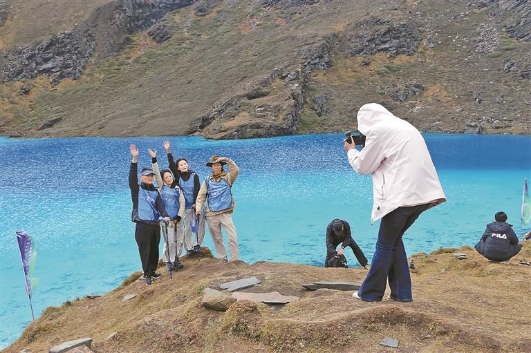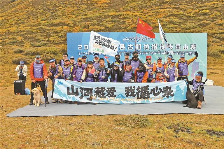 近年來,古如拉措憑借獨(dú)特的“愛心藍(lán)寶石”自然景觀,成為徒步愛好者的向往之地。本次2.5公里的徒步路線地質(zhì)景觀豐富多變,參賽者依次穿越灌木叢、荊棘林、裸露石、山脊線等?!暗诌_(dá)愛心湖時(shí),那片湛藍(lán),瞬間消減了我所有疲憊。”參賽者妍妍激動(dòng)地說。