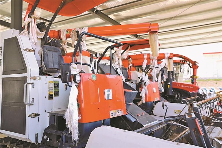 圖為停放在克日村機(jī)械庫(kù)里的現(xiàn)代化農(nóng)機(jī)。記者 尼瑪扎西 攝