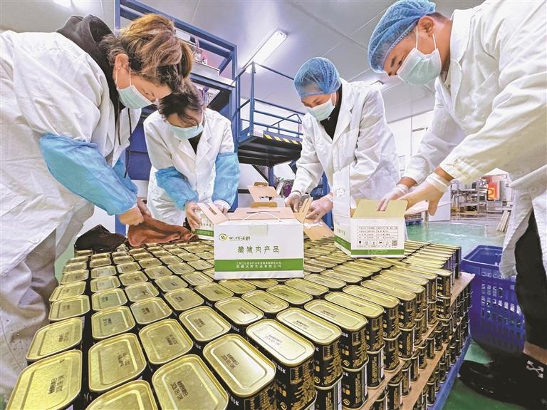 圖為林芝市工布江達(dá)縣藏香豬產(chǎn)業(yè)園內(nèi),員工在對(duì)加工好的藏香豬肉罐頭進(jìn)行分類打包。記者 白瑪澤旺 次仁平措 攝