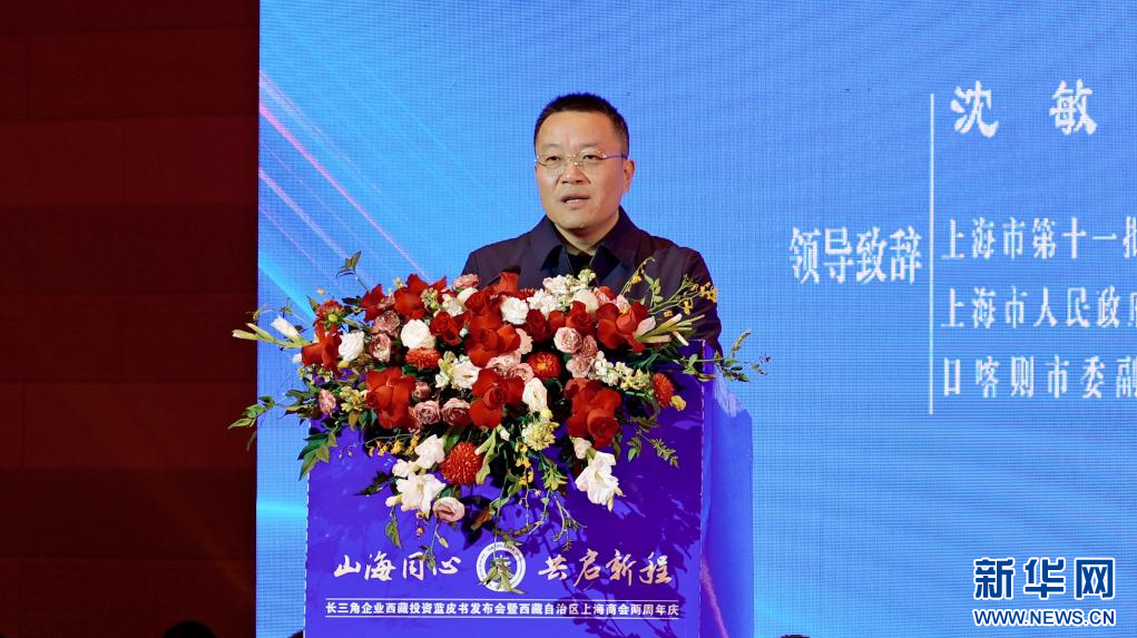 11月29日,上海市第十一批援藏干部聯(lián)絡(luò)組組長(zhǎng),日喀則市委副書記、常務(wù)副市長(zhǎng)沈敏致辭。新華社發(fā)(周昱龍 攝)