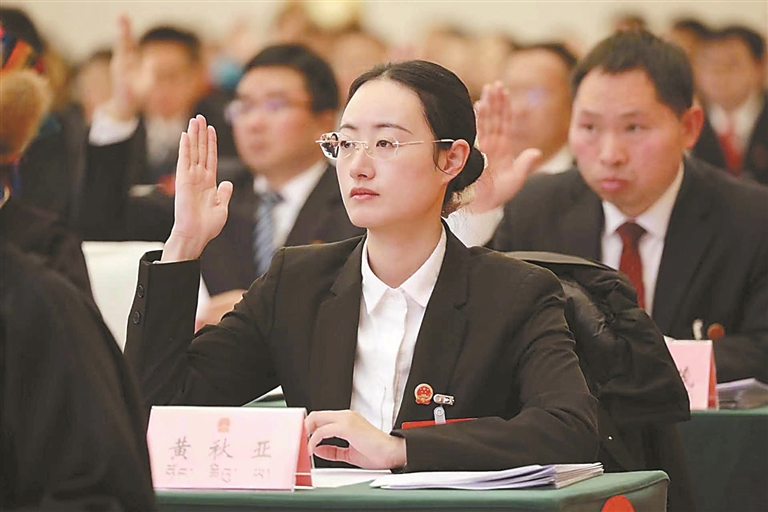 圖為山南市人大代表舉手表決政府工作報告。