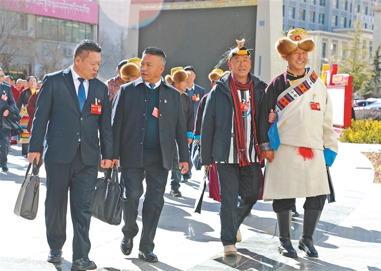 圖為山南市政協(xié)委員步入會場。