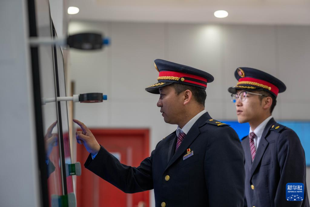 2月14日,斯朗旺扎(右)機(jī)班在呼喚確認(rèn)信號(hào)。新華社記者 旦增尼瑪曲珠 攝