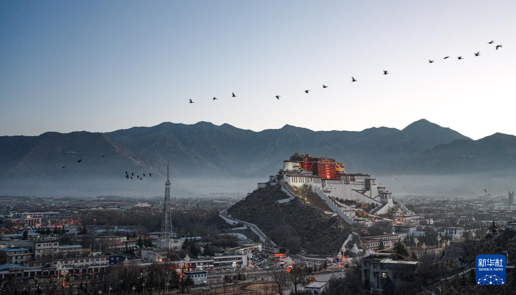 這是2月18日拍攝的新年晨光中的布達拉宮。新華社記者 丁增尼達 攝