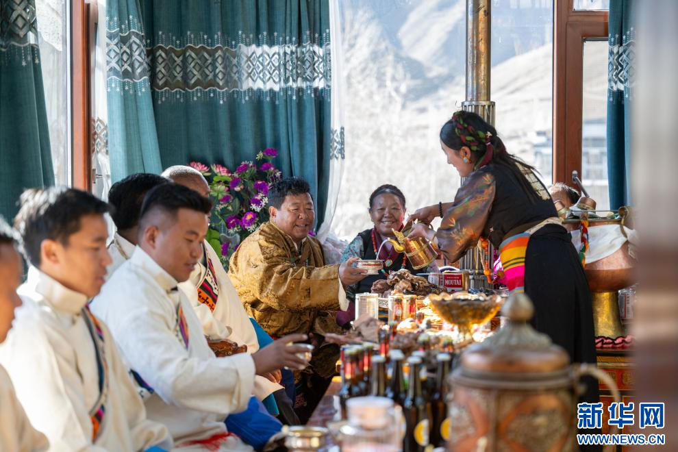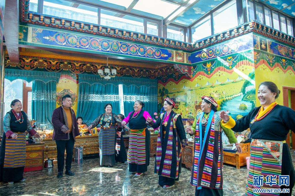 1月20日是藏歷12月2日,也是日喀則農(nóng)家新年初二。西藏自治區(qū)日喀則市桑珠孜區(qū)聶日雄鄉(xiāng)楚松村村民多吉旺堆一家及親朋好友相聚在家里,一起喝著青稞美酒,吃著香噴噴的牛羊肉,載歌載舞喜過(guò)農(nóng)家新年。
