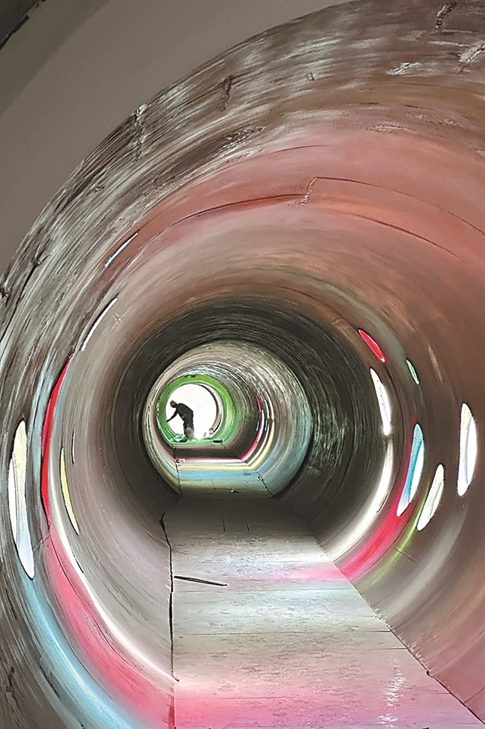 圖為西藏美術(shù)館內(nèi)的彩色管道藝術(shù)裝置。