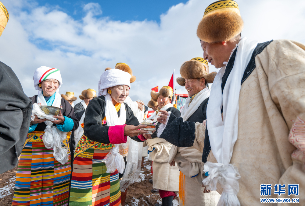 3月16日,西藏拉薩市林周縣春堆鄉(xiāng)春堆村的春耕儀式現(xiàn)場(chǎng)。新華網(wǎng) 旦增努布 攝