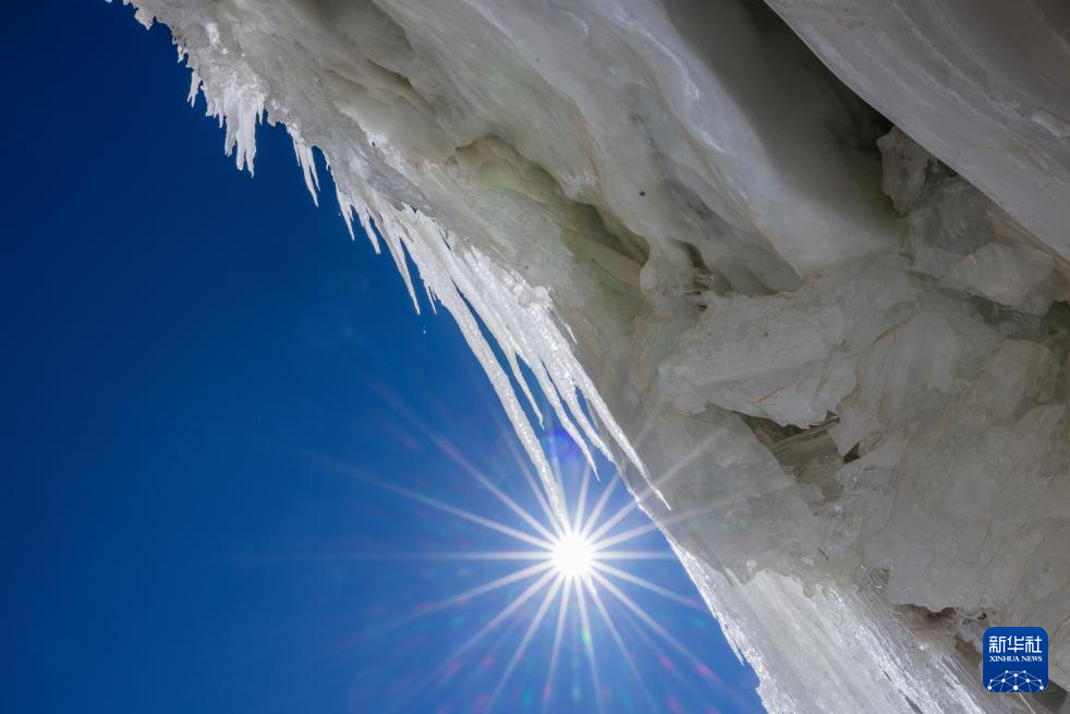 陽(yáng)光下的藏色崗日冰川(3月10日攝)。新華社發(fā)(四郎江村攝)