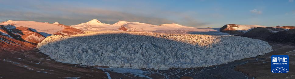 清晨的藏色崗日冰川(無(wú)人機(jī)拼接照片,3月10日攝)。新華社發(fā)(四郎江村攝)