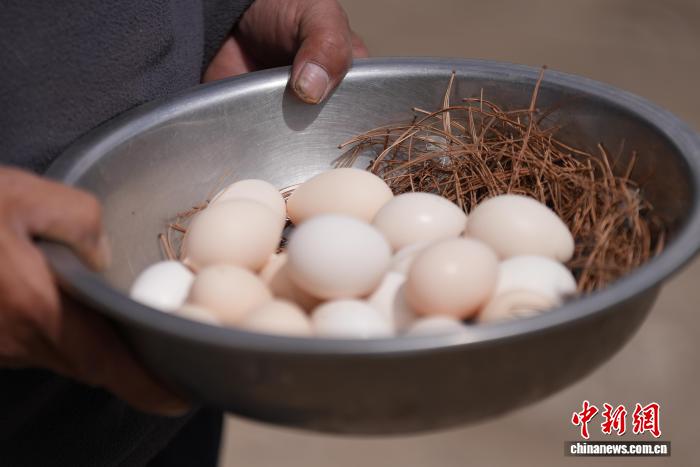 圖為合作社負(fù)責(zé)人次仁羅旦在收集雞蛋。貢確 攝