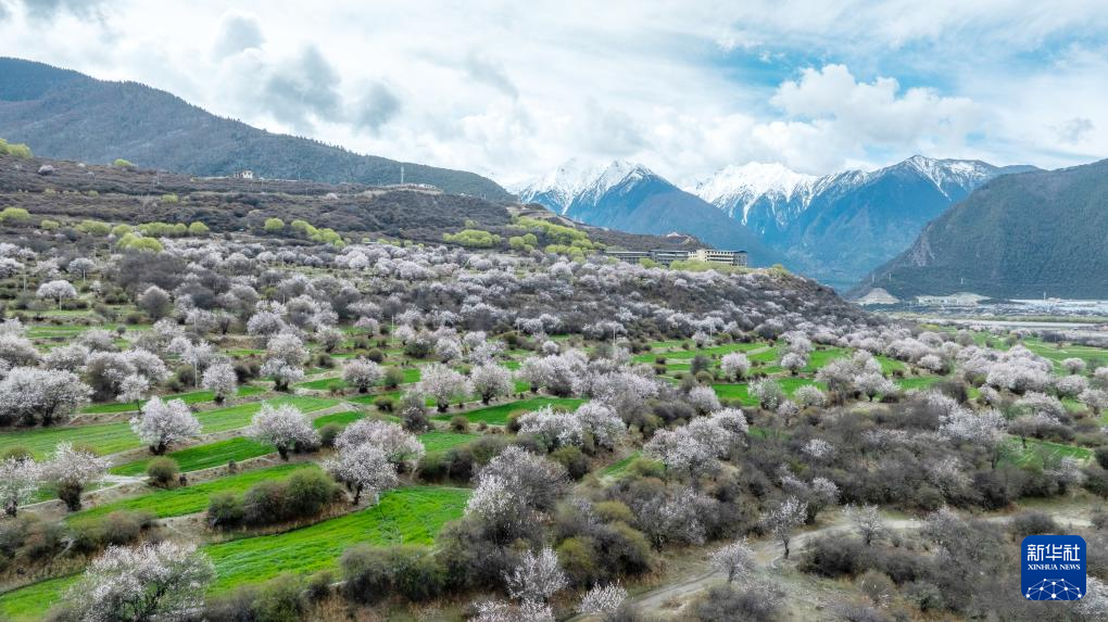 這是4月2日在林芝巴宜區(qū)朵當(dāng)村拍攝的桃林(無人機照片)。新華社記者 丁增尼達(dá) 攝