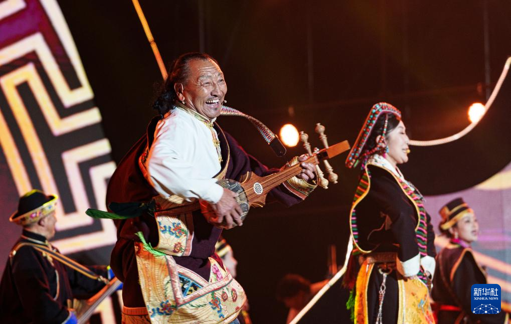 這是4月3日拍攝的林芝第二十三屆桃花旅游文化節(jié)開幕式文藝演出現(xiàn)場。新華社記者 丁增尼達(dá) 攝