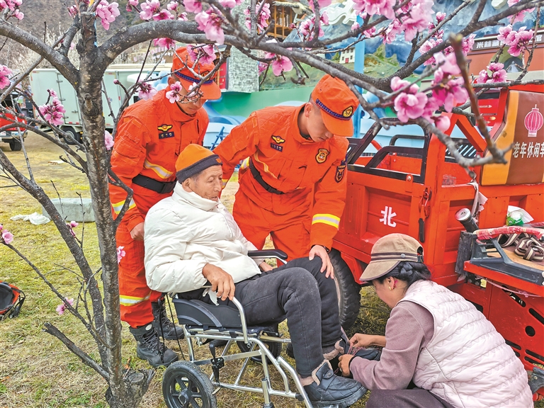 林芝消防救援機動支隊巴宜大隊指戰(zhàn)員為群眾提供暖心幫扶。 通訊員 扎西頓珠 攝