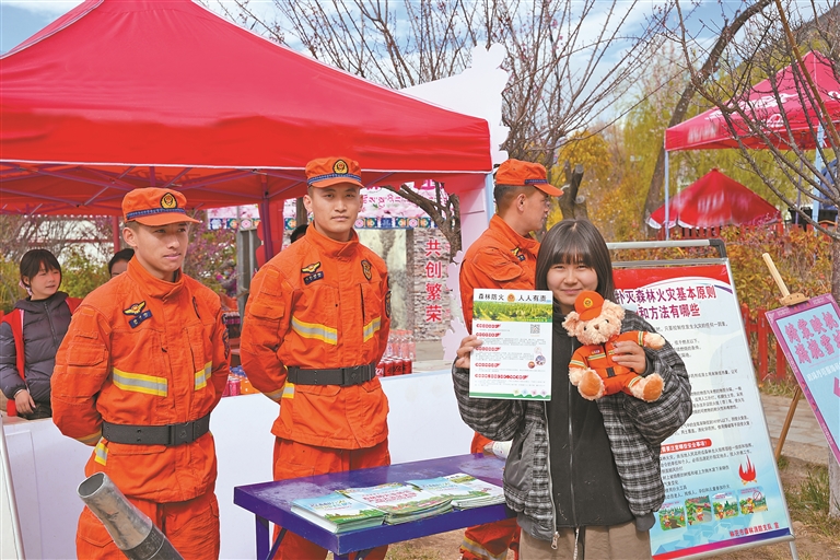 林芝消防救援機動支隊巴宜大隊指戰(zhàn)員向群眾普及防火知識。通訊員 丹增平措 攝
