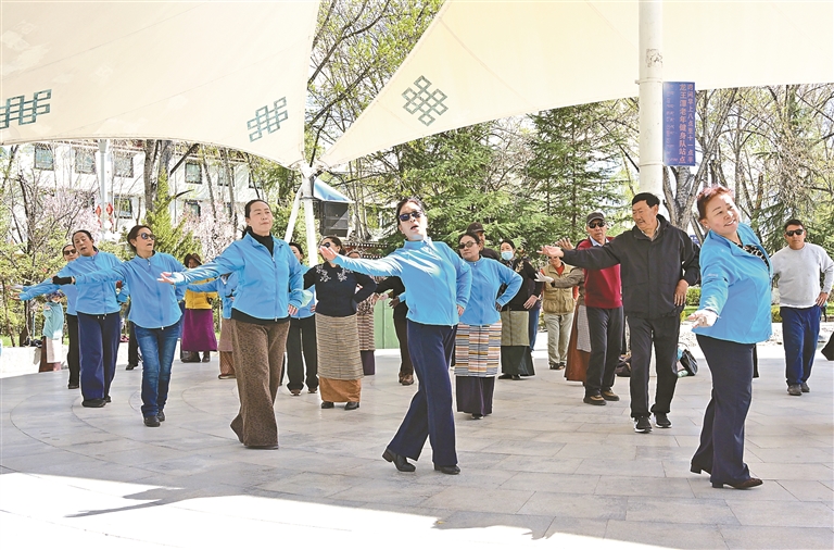 宗角祿康公園內(nèi),春日風(fēng)光靈動(dòng)又愜意。湖面碧波蕩漾,嫩綠垂柳輕拂水面,一艘艘游船悠然穿行于碧波之上,船上游客歡聲笑語(yǔ)不斷。岸邊廣場(chǎng)上,歡快的音樂(lè)此起彼伏,不少市民伴著節(jié)拍跳起健身操,舞步輕盈、神采飛揚(yáng),悠然閑適的靜態(tài)美景與熱情洋溢的動(dòng)態(tài)活力相互交融,盡顯高原春日別樣風(fēng)情。