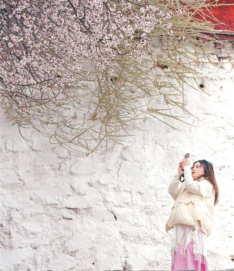 市民在用手機(jī)拍攝拉薩春日美好風(fēng)光。記者 索朗旺久 攝
